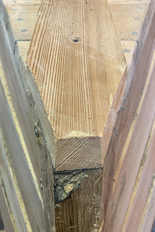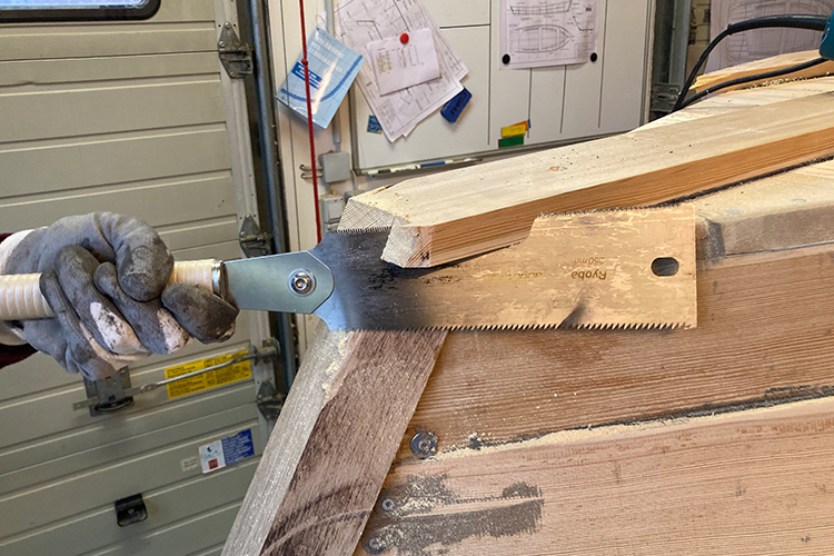 Also, ich bin ja kein Bootsbauer, aber wenn ich das alles richtig verstanden habe, dann gibt es den Innen- und den Außensteven. Beides ist vorne am Bug und am Innensteven haben wir die Planken dran festgemacht. Jetzt kommt der Außensteven dran....da kommt dann die Galionsfigur drauf ! Außerdem macht man dort das Schiff fest, also: wichtig !