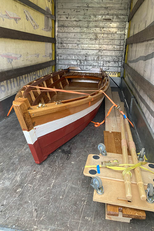 Boot auf Hänger, Hänger samt Boot zur Bootstaufe nach Bielefeld....