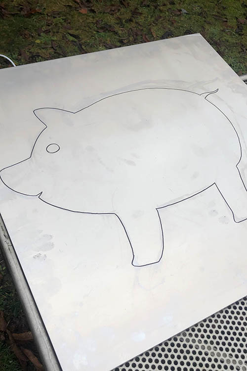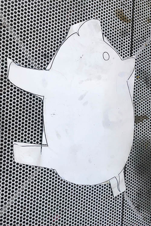 Gesagt getan !? Leider nein. Oder jein. Also, erst einmal hab ich gegoogelt und einen Hahn gefunden. Die Bauanleitung war ok (s. Liste), aber im Detail alles nicht so einfach. Ich hab jedenfalls meine Tochter Frederike gebeten, mir ein Schwein auf ein Alublech zu malen...und hab´s dann ausgeschnitten. Den Rest kann ich noch gar nicht erzählen...ich bin in Details gefangen.